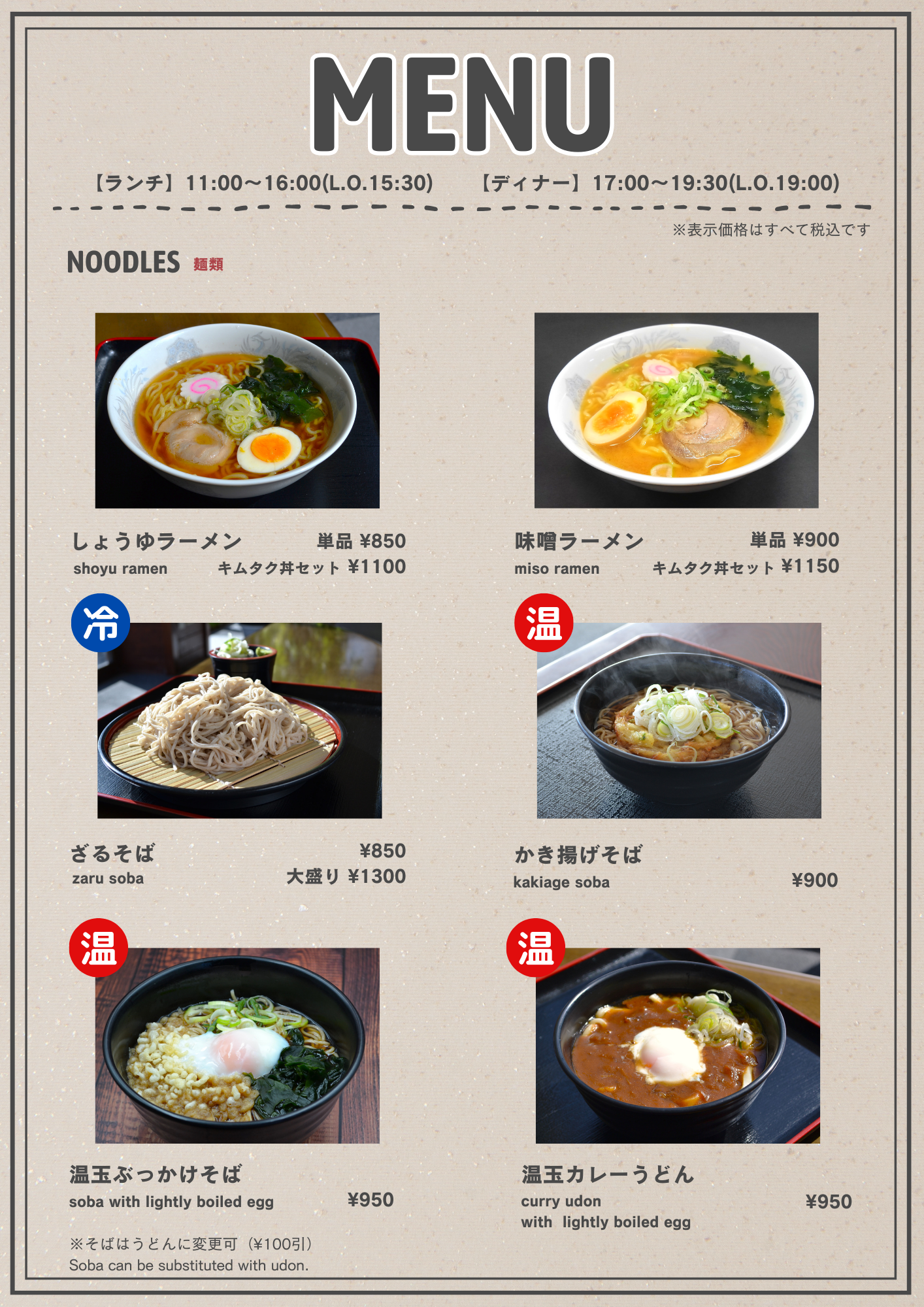 ランチタイム 11:00~16:00(ラストオーダー15:30) ディナータイム 17:00~20:00(ラストオーダー19:30)